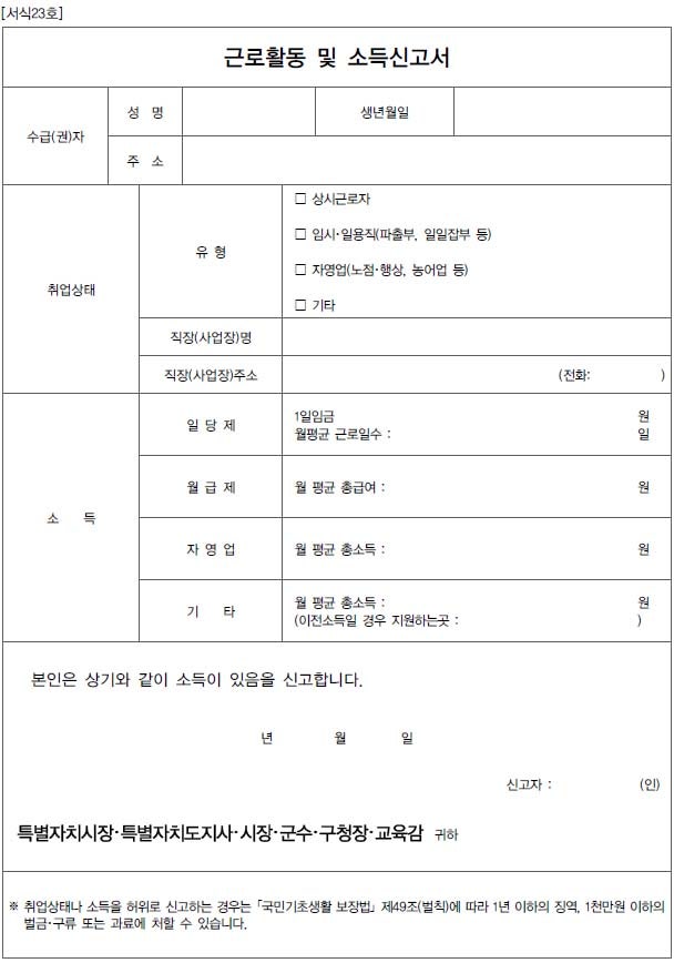수급자 소득신고 구청 소급자인데 취업 후 첫 월급을 받아 소득신고를 해야하는데 행정복지센터 말고